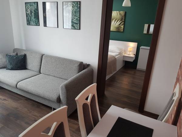 Standard pokoi idealny, duża łazienka. W aneksie kuchennym dostępne żelazko i deska do prasowania. Bardzo fajne miejsce. Jedyne co na malutki minus to balkony sąsiadujące które nie są ...